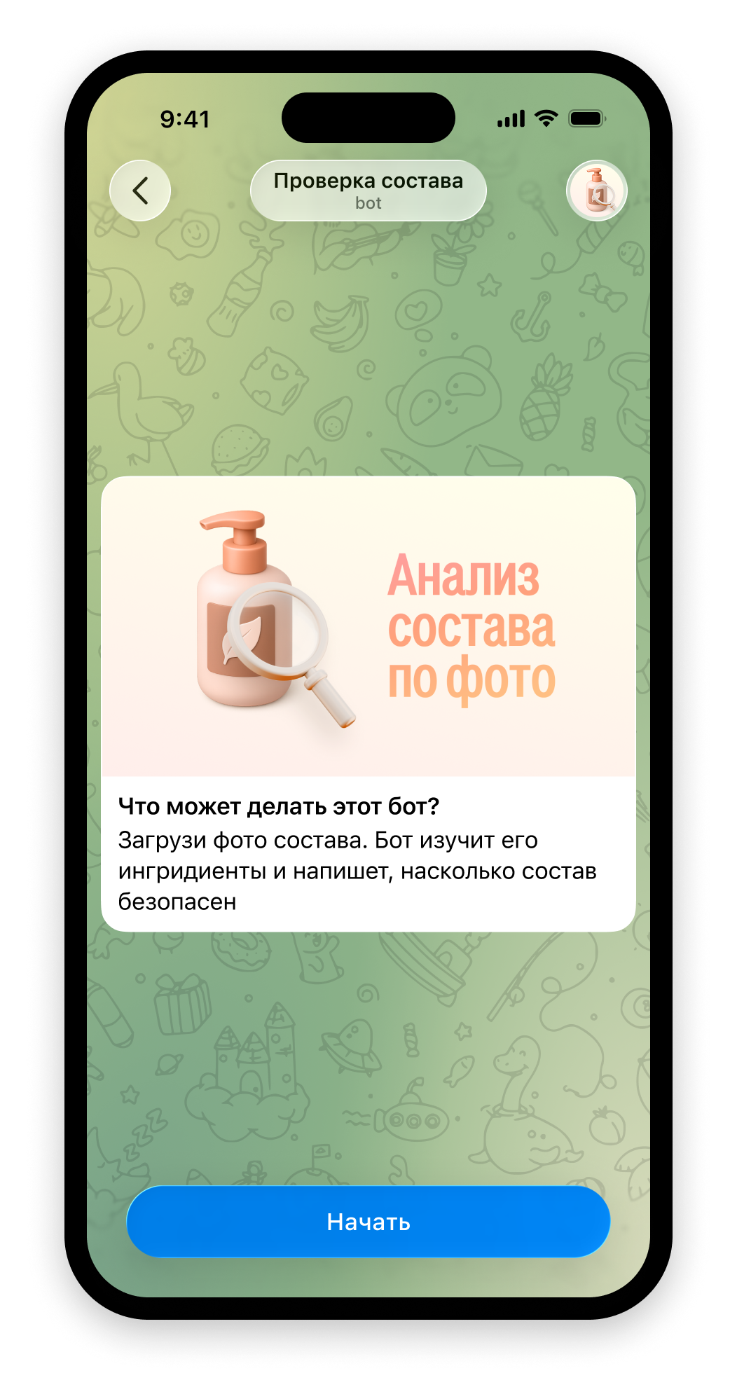 Бот анализирует состав, проверяет безопасность ингредиентов и даёт рекомендации по использованию продуктов